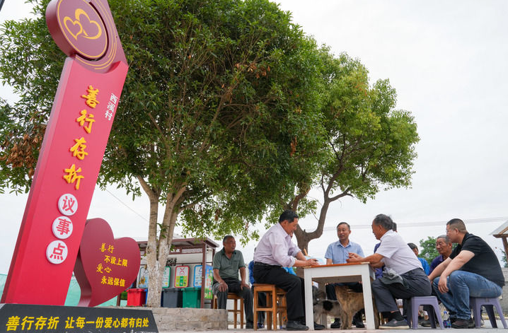 2025年6月12日,在江苏省宝应县广洋湖镇西溪村,当地党群服务中心的工作人员组织村民进行议事会。新华社记者 李博 摄