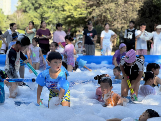 与此同时,小区内设置的水上泡泡池娱乐区,在为孩子们带来夏日欢乐的同时,也成为了防溺水安全教育的“实践阵地”。社区工作人员一方面提醒孩子们在泡泡池内玩耍时的安全注意事项,比如不要奔跑、避免滑倒跌入池中,另一方面引导家长切实履行监护责任,时刻关注孩子的动向,不能因一时疏忽让意外发生。孩子们在尽情享受水上乐趣的过程中,也潜移默化地接受了防溺水安全教育,懂得了在水上活动时要遵循安全规则。