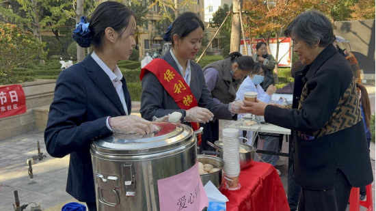 保利物业精心准备了营养丰富的早餐,有热气腾腾的豆浆、松软可口的大馍,还有营养的鸡蛋。居民们在完成健康检查后,能及时吃上一份暖心的早餐。一位维吾尔族大妈接过早餐,感激地说:“社区和物业想得真周到,检查完身体还能吃上热乎饭。”