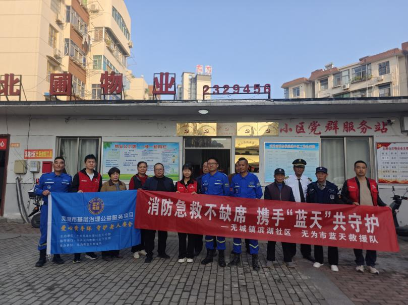 近日,滨湖社区联合无为市蓝天救援队开展“消防急救不缺席 携手‘蓝天’共守护”活动,希望通过活动将消防安全知识深植于居民心中。