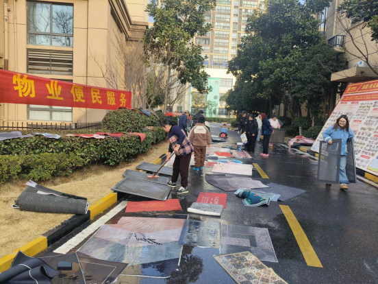 活动现场,社区工作人员与物业工作人员提前做好准备工作,划分清洗区域、摆放高压水枪、水桶、清洁剂、抹布等清洗工具,有序引导居民前来登记。针对不同材质的地垫和纱窗,工作人员采用针对性清洗方式,用高压水枪冲去顽固污渍,拿抹布仔细擦拭边角缝隙,经过冲洗、刷洗、控水等一系列细致操作,原本沾满灰尘、藏有污垢的地垫和纱窗焕然一新。居民们看着清洗干净的物品,脸上洋溢着满意的笑容,纷纷为社区和物业的暖心举措点赞,现场不时传来欢声笑语,年味愈发浓厚。