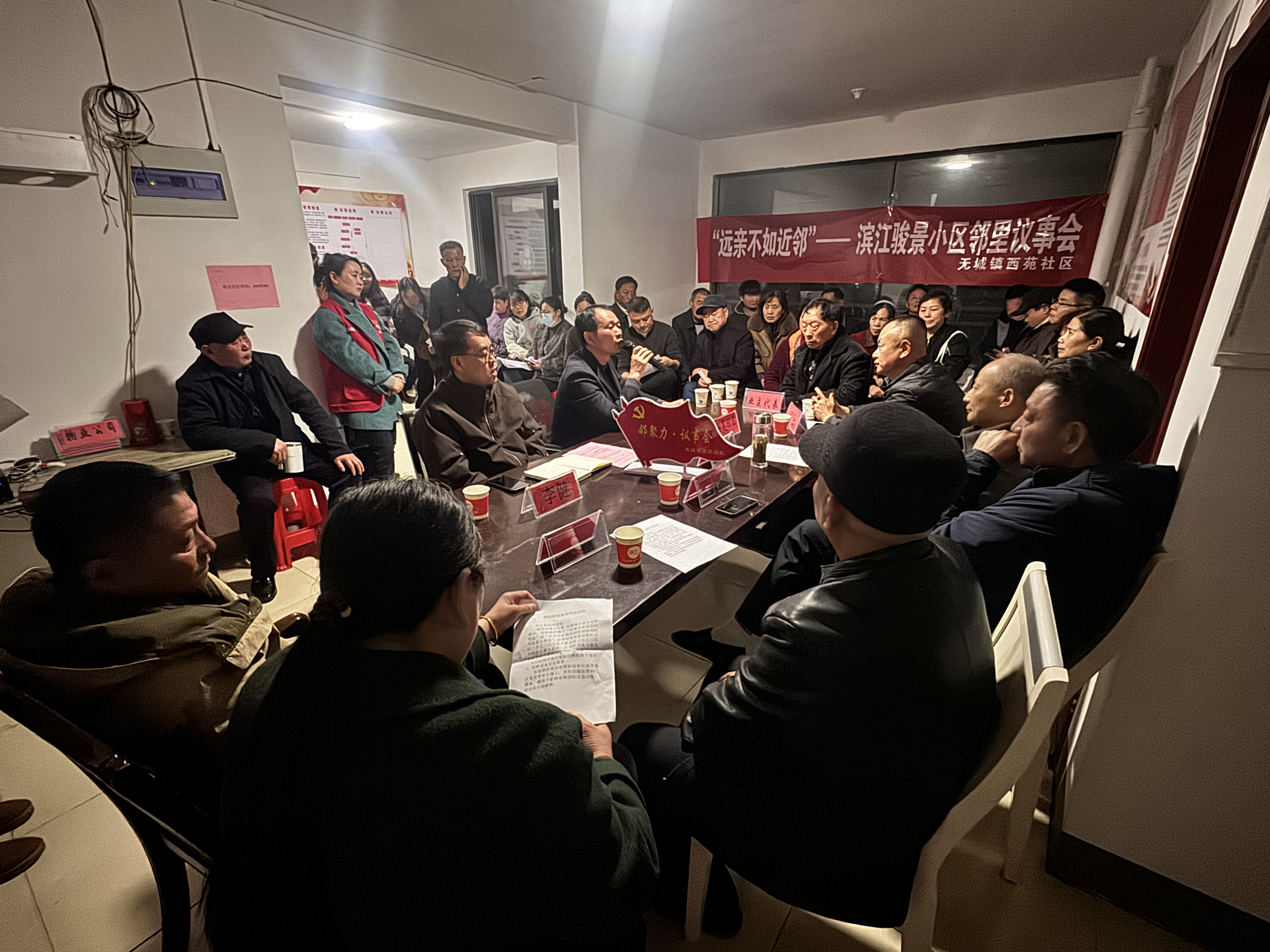 为破解小区治理难题,畅通居民诉求表达渠道,营造“邻里守望、互帮互助”的和谐氛围,近日,无城镇西苑社区组织召开滨江骏景小区“远亲不如近邻”邻里议事会。社区工作人员、小区党员代表、居民代表及物业企业代表齐聚一堂,“面对面”沟通、“心贴心”交流,共商小区发展大计。