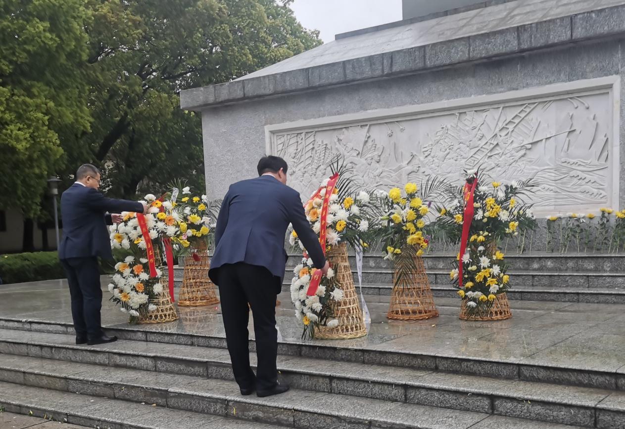 鲜花献英烈、哀思祭忠魂。镇党委书记赵世宏、镇人大主席毛少华首先上前敬献花篮并整理缎带。全体人员集体默哀致意,面朝烈士墓三鞠躬,向长眠地下的革命先烈们表达致以最崇高的敬意。