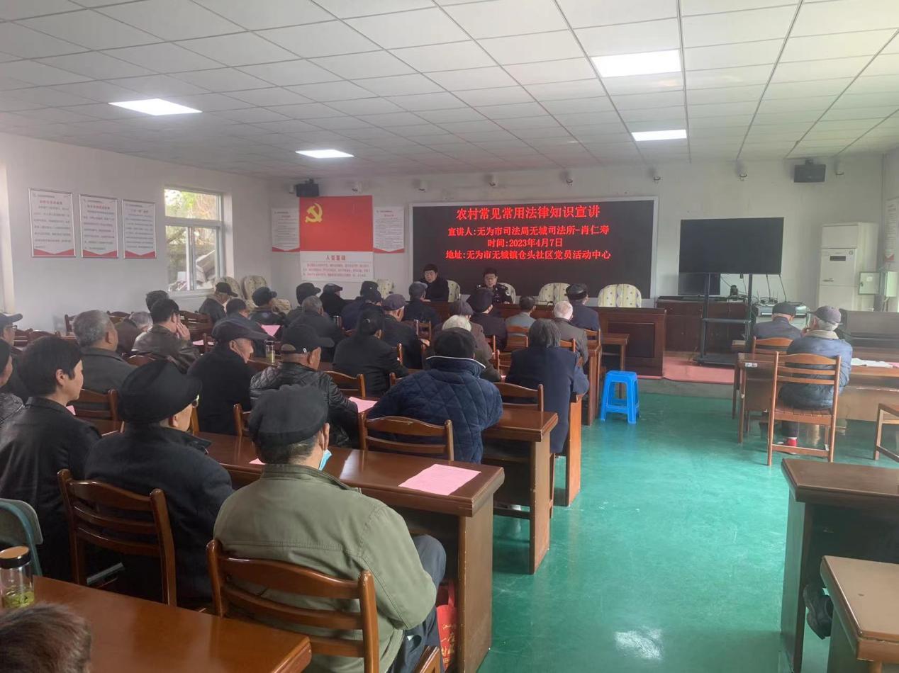 为引导群众学法、守法、用法,提升农村广大村民的法律观念,近日,无城镇仓头社区联合镇司法所在社区一楼大会议室开展农村常见法律知识宣讲活动。