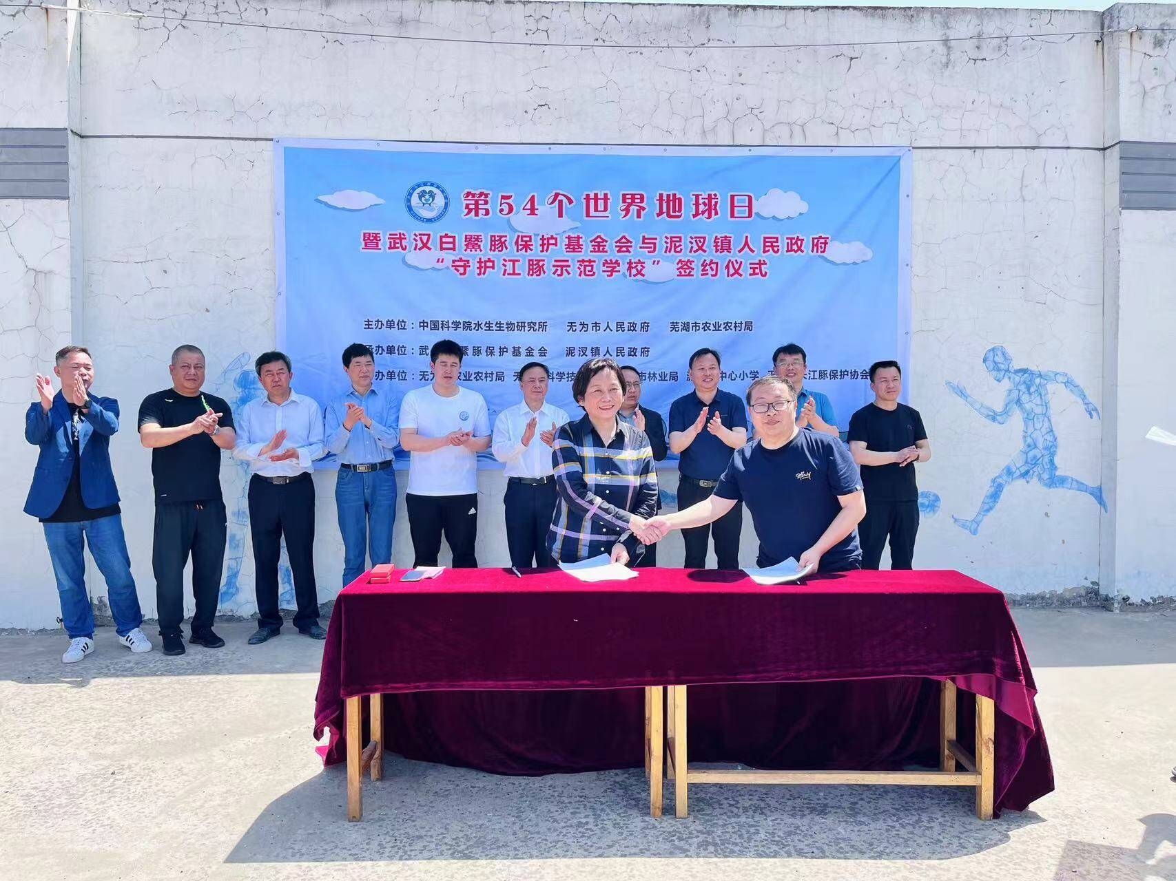 当天,武汉白鱀豚保护基金会与无为市泥汊镇政府进行了签约,双方将共同推动无为市守护江豚示范学校建设。“这不仅意味着芜湖市第一座江豚示范学校的成立,也标志着长江泥汊段江豚保护工作进入了新阶段。”泥汊镇副镇长缪黎俊介绍,芜湖市首座江豚示范学校落户泥汊中心小学并非偶然,2020年,该镇成立了无为市长江豚保护协会。自成立以来,该协会一直致力于长江豚知识科普与培训、公益保护、野外观测科考、文化推广与开发等业务。“近年来,泥汊镇与无为市长江豚保护协会协同推进长江禁捕工作的开展,以保护江豚等物种多样性,保持长江生态原真性和完整性。”缪黎俊表示,建设守护江豚示范学校不仅是将“守护江豚 保卫长江”的光荣使命传递给下一代,更是让人与自然和谐共生的理念植入孩子们的心灵。
