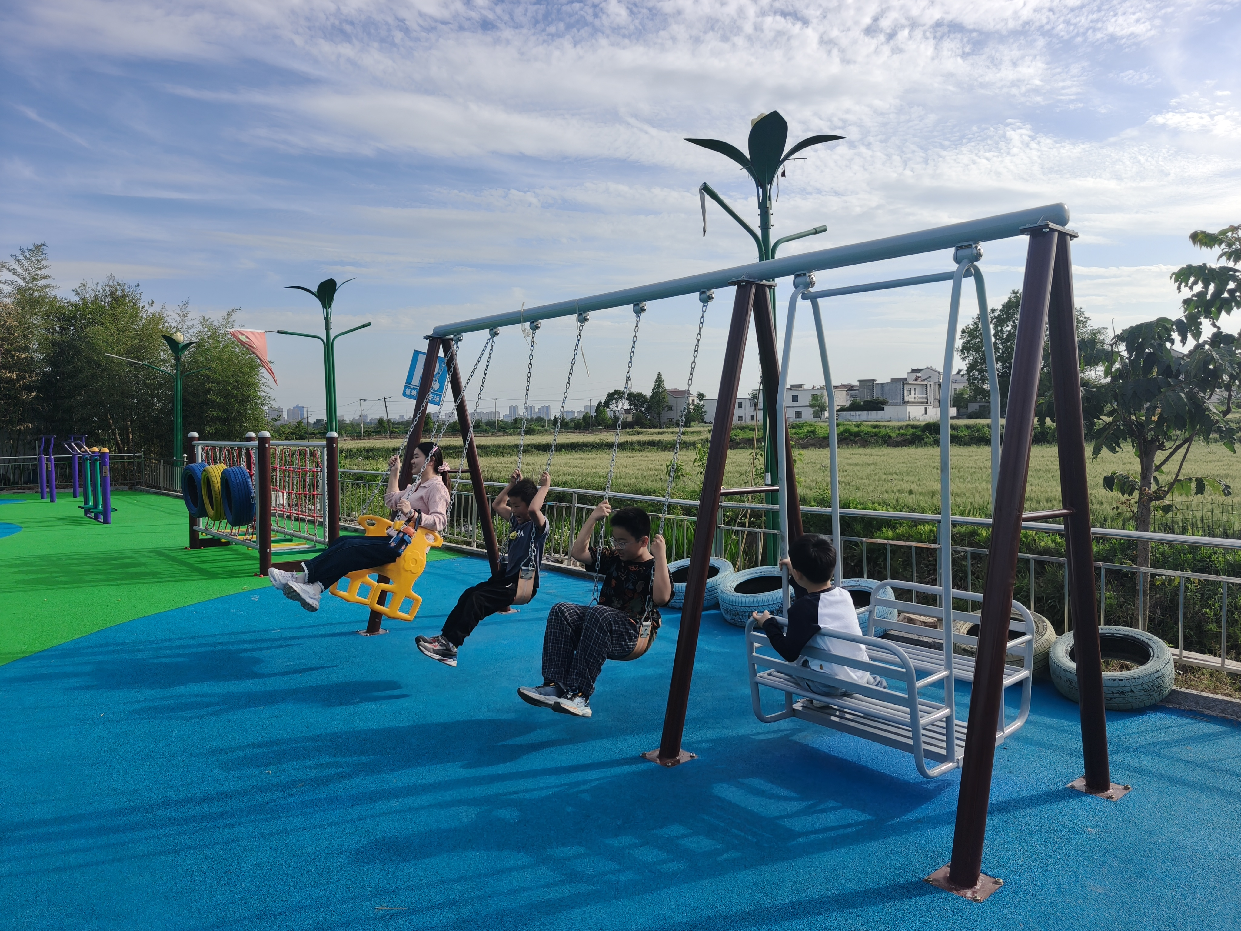 丰富生活,成为乡村亮丽风景。“以前村里没有儿童乐园,孩子们只能在路边或者院子里玩耍,既不安全也没有乐趣。现在有了这个乐园,孩子们终于有了一个属于自己的快乐天地。”一位当地村民高兴地说道。儿童乐园的建成,不仅丰富了孩子们的课余生活,也为家长们提供了一个陪伴孩子成长的好去处。每逢周末和节假日,乐园里总是充满了孩子们的欢声笑语,成为村里一道亮丽的风景线。同时,乐园也成了传播知识和文化的重要阵地,计划在乐园举办各类亲子活动、科普讲座、文化演出等,让孩子们在玩耍中学习,在快乐中成长。