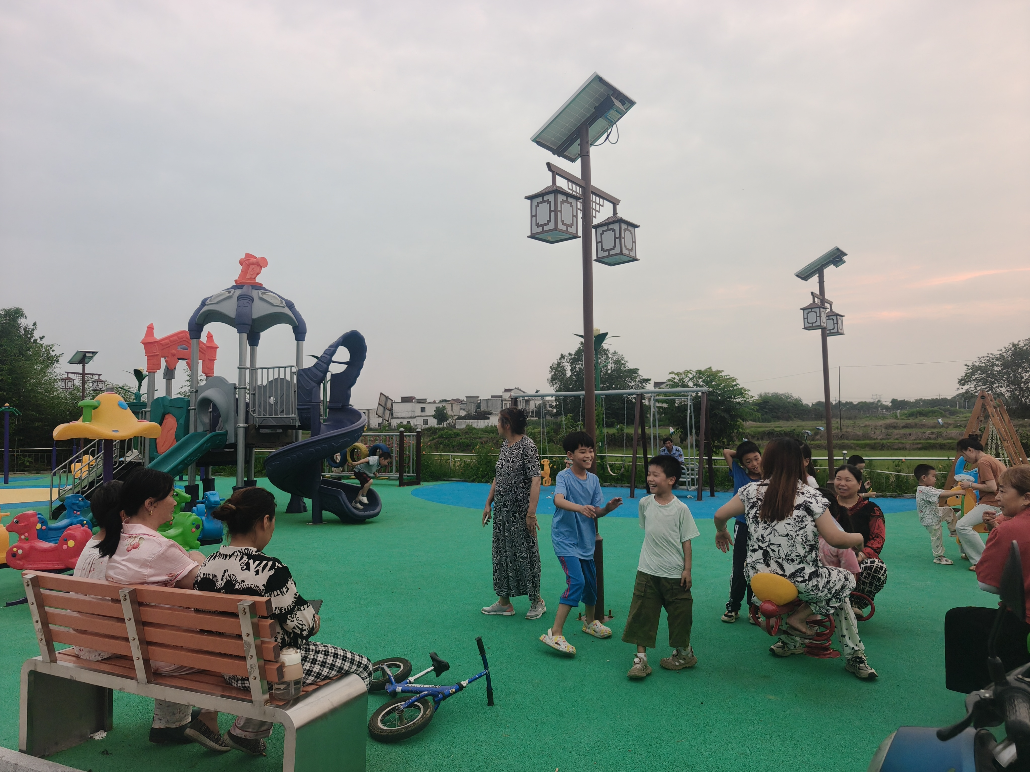 聚焦需求,打造全龄友好空间。儿童乐园建设深度践行“儿童需求导向”理念,在规划设计阶段,引入儿童专家团队,科学划分运动区、游乐区及家长休憩区,确保空间适配儿童成长需求;广泛征集村民意见,定制旋转木马、摇摇椅、跷跷板等设施,覆盖各年龄段儿童的运动与游戏需求;更贴心设置成人健身区与亲子互动区,让家长在锻炼的同时就近看护孩子,实现从“儿童专属”到“全龄友好”的延伸。