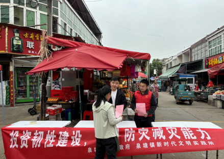 摊位旁的“安全课”——泉塘镇在菜市场开展“国际减灾日”宣传
