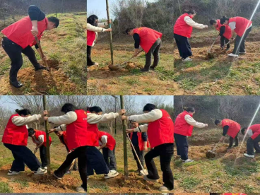 植树添新绿,“巾帼” 展风采。阳春三月,草长莺飞,正是植树造林的大好时节。连日来,襄安镇机关、各村(社区)、企事业单位积极响应政府号召,“巾帼”志愿者也纷纷行动起来,与男同胞一道,在镇新文明实践所组织下积极开展义务植树活动,为绿化家园、建设美丽中国出一份力。村口路边、村部社区、广场公园、荒坡水岸、地头庭院,到处都有“巾帼”志愿者植树的身影。她们纷纷放下手中的忙碌,或几人一组,或单独行动,或配合男同事,一起投入到植树造林的队伍中。挖坑、运苗、扶树、培土、浇水,现场忙碌、有序。她们不怕脏不怕累,相互配合,分工明确。手上、鞋上、衣服上沾满了泥土,汗水不一会儿流了下来,也不愿停下来歇一歇,现场欢声笑语,个个满腔热情。大家只有一个共同心愿:植树造林,绿化家园。在大家的共同努力下,原本空荡荡的地块陆续种上了一棵棵碧绿的小树苗,为大自然增添了生机与希望。立足春畦,放眼平畴,小树苗迎风挺立,茁壮成长,充满希望……一处处跃动的“巾帼红”诠释着奉献的真谛:我参与、我奉献、我快乐。
