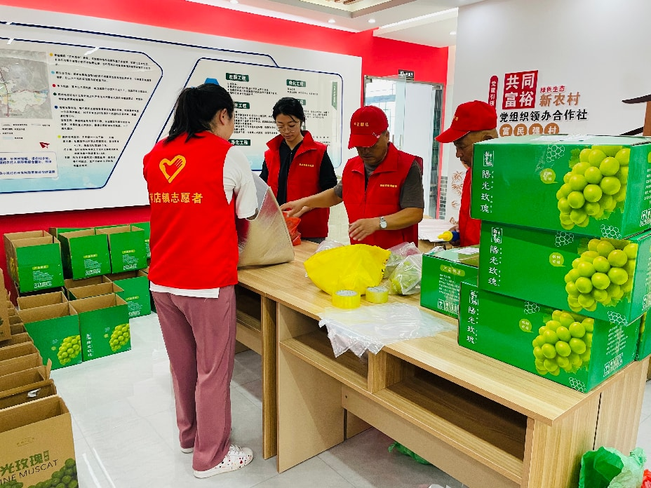 图为志愿者到乡村振兴馆助力新农直播间打包发货