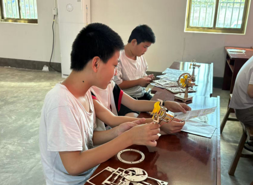 在工作人员和志愿者的指导下,孩子们开始动手组装风扇,小朋友们按照图纸步骤,逐步操作拼接、安装螺丝、整理电线、组装风扇和电机、学习电路连接知识,大家交流制作流程和心得体验,在组装过程中强化沟通,增进彼此友谊。在小朋友们的巧手下,一个个风扇制作完成,孩子们体验着小风扇带来的凉爽。