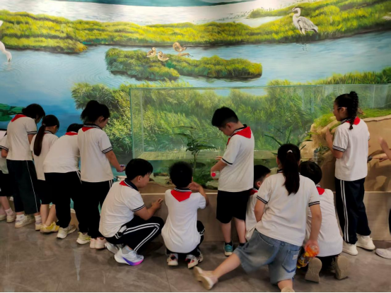 活动前期,学校与竹丝湖游客接待中心科普室工作人员进行了充分沟通,结合小学生的认知特点和兴趣点,精心设计了科普讲解、互动体验、知识问答等多个环节,确保活动既具知识性又富趣味性。活动当天,在老师们的有序带领下,学生们怀着激动的心情来到科普室。一进入科普室,各类图文并茂的科普展板、造型新颖的科学模型便吸引了学生们的目光,大家纷纷驻足观看,不时发出好奇的提问。