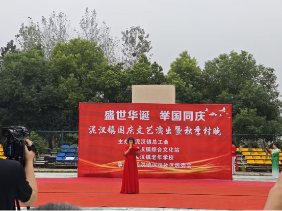 9月28日上午,由无为市泥汊镇总工会、泥汊镇综合文化站、泥汊镇老年学校联合主办,泥汊社区承办的“盛世华诞,举国同庆”国庆节文艺演出暨秋季“村晚”在泥汊镇泥汊社区渡江文化广场精彩上演。