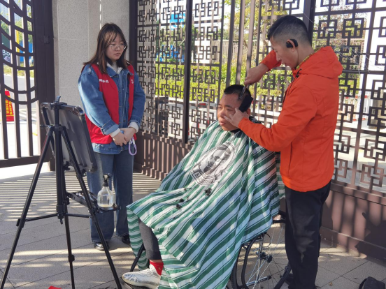 另一边的“义剪服务”区同样人气高涨。社区特别邀请了专业理发师,为老年居民提供免费剪发服务。理发师耐心询问每位老人的发型需求,细致地修剪头发,还不时与老人唠家常,叮嘱秋冬护发小常识。刚剪完头发的王叔叔对着镜子满意地说:“社区想得太周到了,不用出门就能剪头发,剪得还好看,心里真暖和!”
