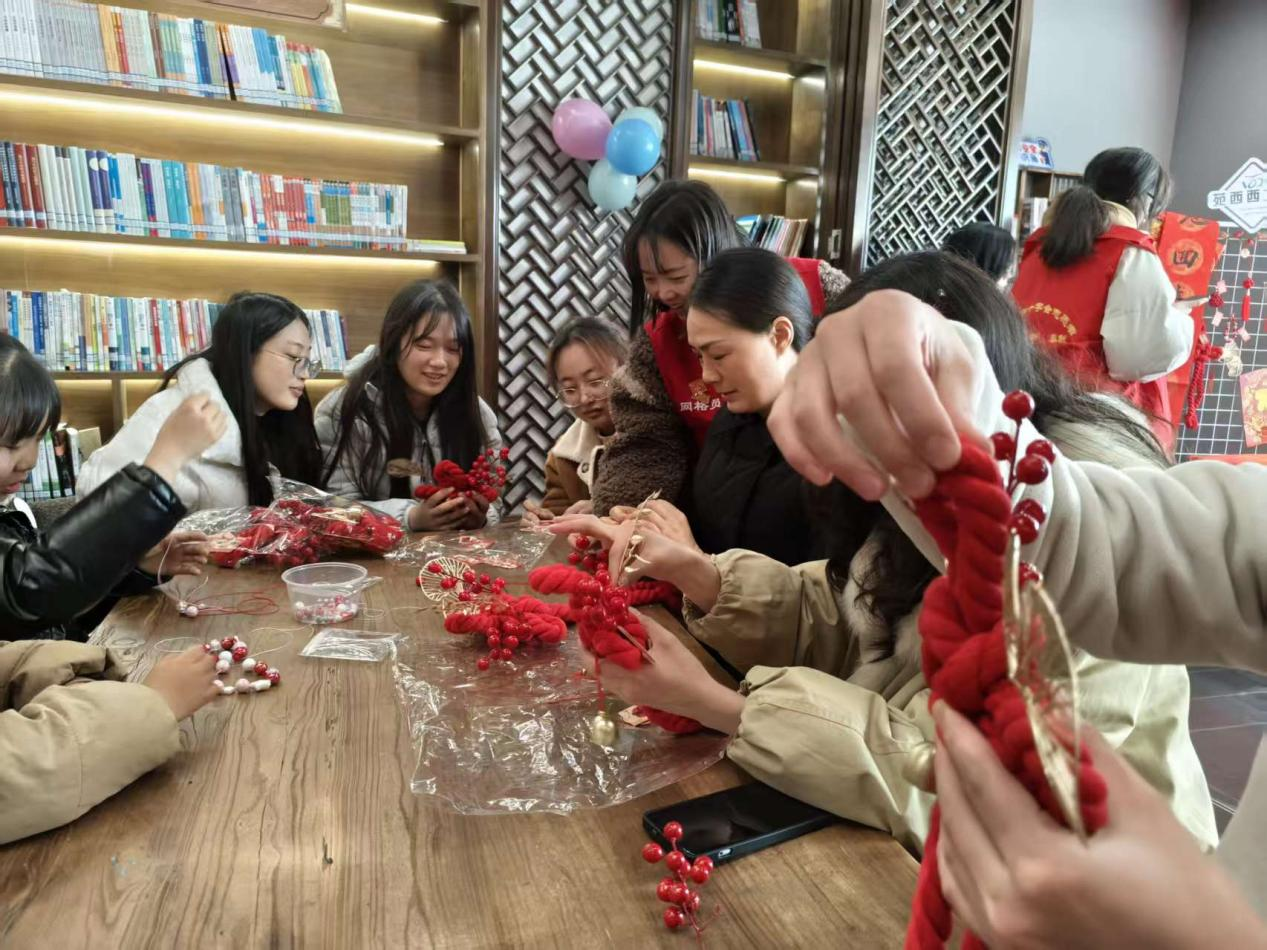 活动现场暖意融融,欢声笑语不断。中国结与串珠手工区,社区志愿者手把手教居民编织技巧。红绳穿梭、彩珠点缀,大家凝神聚气,穿针引线间,一个个精致的中国结、一串串灵动的串珠饰品逐渐成型。“中国结寓意吉祥如意,串珠承载美好期许,亲手做的礼物送给家人,特别有意义!”居民赵大姐拿着刚完成的作品,脸上满是欢喜。