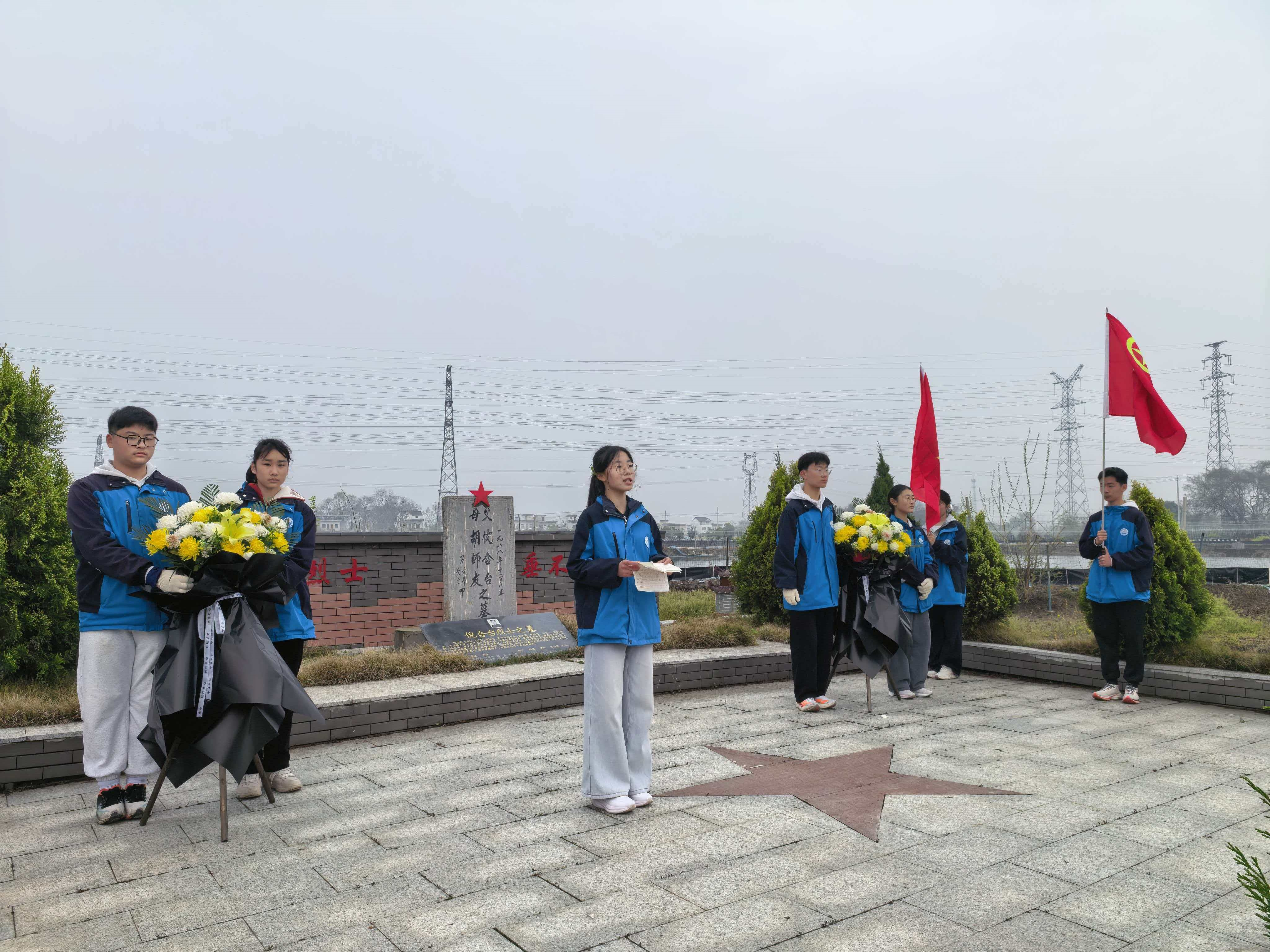 清晨7时30分,同学们身着统一校服,在学校操场整齐列队。随着出发指令下达,远足队伍高举团旗、队旗与校旗,精神抖擞地向着倪合台烈士墓前行。徒步过程中,同学们严守纪律、队伍井然有序,沿途唱响红歌、呼喊口号,展现出昂扬向上的青春风貌。