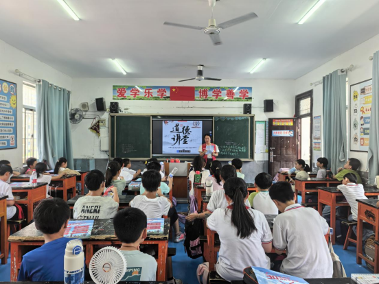 活动在全体学生齐唱《三德歌》的温暖旋律中拉开序幕。孩子们用清澈的歌声传递“孝德、诚德、爱德”的深刻内涵,稚嫩的脸庞上洋溢着对真善美的向往。随后,宣讲员以“身边榜样”为切入点,深情讲述了两位道德模范的感人故事。