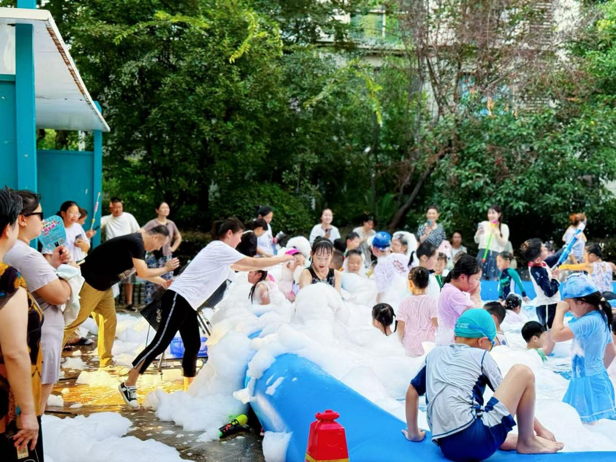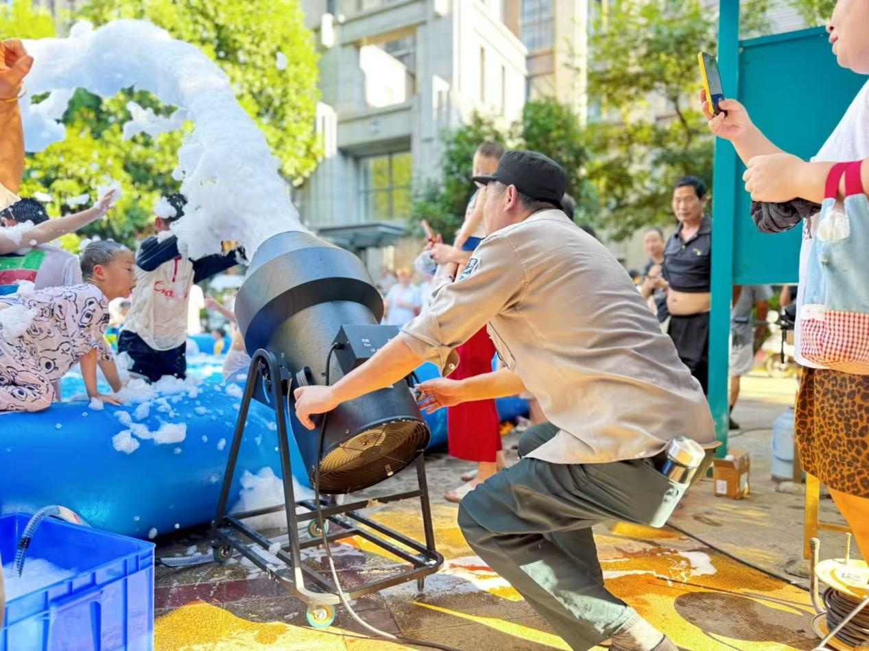 活动现场乐翻天,贴心服务不停歇。随着音乐响起,孩子们迫不及待地踏入嬉水区,水枪“对战”、泡泡派对等项目轮番上演,水花飞溅中满是童真笑语。家长们在一旁看护,不时被孩子们的欢乐感染,加入互动行列。物业工作人员穿梭在人群中,及时为孩子们补充饮用水,帮家长照看物品,提醒大家注意安全,忙而不乱的身影成为现场一道暖心风景线。