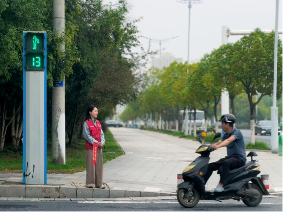 在辖区交通路口,双桥社区的志愿者们身着红色志愿马甲,化身文明交通“引导员”。他们手持文明引导旗,耐心提醒非机动车驾乘人员佩戴安全头盔、遵守交通信号;面对行人,他们热情解答路况疑问,宣传文明出行知识,让文明交通的理念在每一次互动中传递。