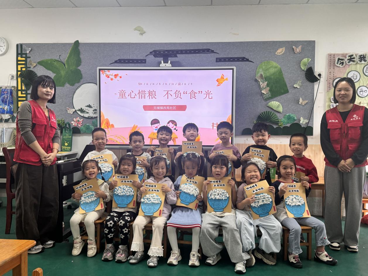 10月15日下午,无城镇西苑社区联合花疃幼儿园开展“童心惜粮,不负‘食’光”主题宣传活动。