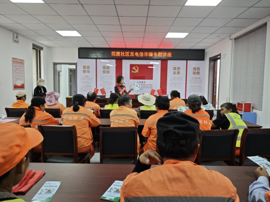 近日,花渡社区组织开展了以“反诈课堂‘不缺席’,社区安全‘不打烊’”为主题的反诈宣传活动。社区工作人员通过开设反诈课堂、发放宣传传单等形式,向居民们普及反诈知识,守护群众的“钱袋子”。
