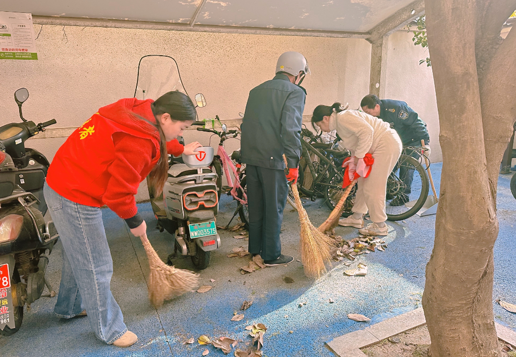联动协作聚合力,解决难题办实事。活动中,社区与共建单位、物业拧成一股绳,现场攻坚整治难点。原本杂乱的道路变得宽敞明亮、电动车排列得整整齐齐、遇楼道废弃家具,联系车辆及时清运、公共空间恢复了应有的开阔与整洁。同时,开展居民、共建单位、物业等五方联动议事会,共同商议社区环境长效保洁事宜。