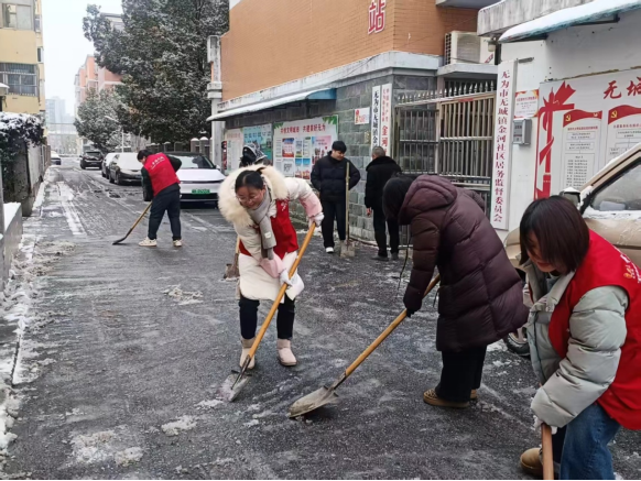 无城镇金河社区开展铲雪除冰活动,保障居民出行安全