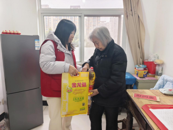 由党员干部组成的走访慰问小组带着满满的关怀与祝福,深入到困难群众家中。每到一处,都与困难群众亲切交谈,仔细询问老人的身体状况和日常生活情况,认真倾听他们的所思所想、所盼所愿,耐心解答群众提出的问题,并为他们送上生活物资。